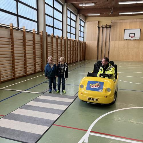 BLICK & KLICK in den 1. Klassen von VS Kematen i.T. 25. November 2025 Der Turnsaal unserer Schule wurde zu einer Straße umfunktioniert – mit einem speziellen Elektroauto wurden spielerisch Situationen simuliert, die Kinder alltäglich auf ihrem Schulweg erleben - ob zu Fuß oder im Auto als Mitfahrer:in.