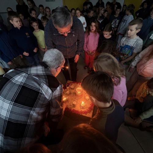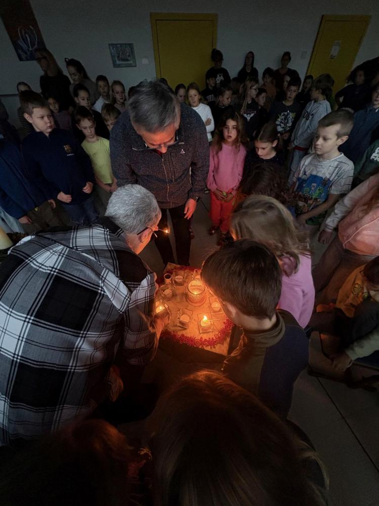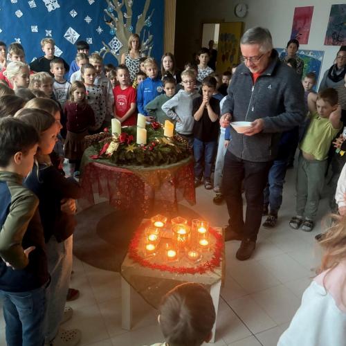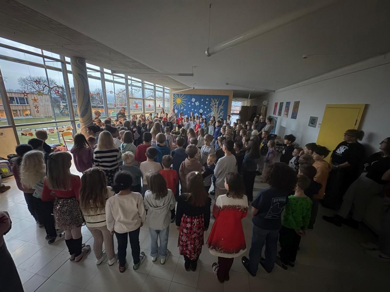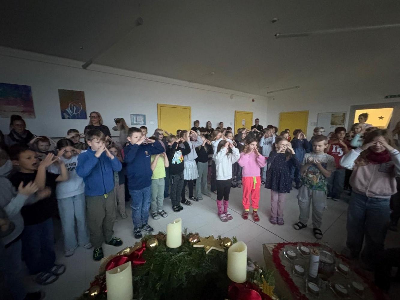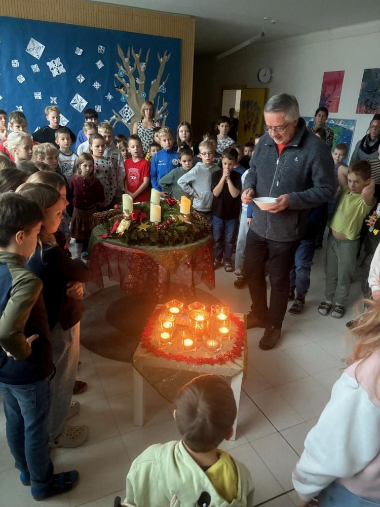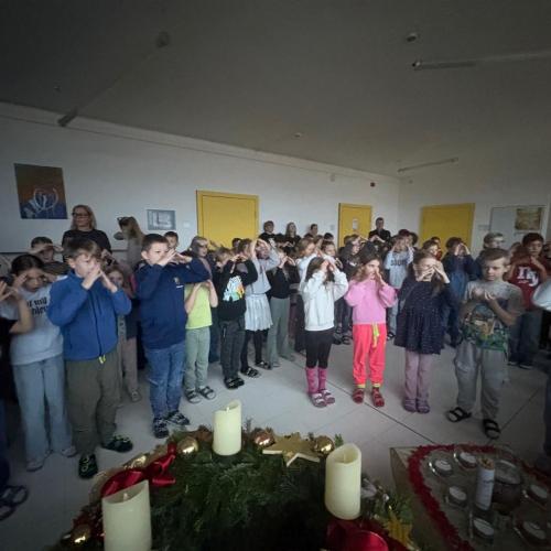 Die stille Zeit fangt on... von VS Kematen i.T. 01. Dezember 2025 Gemeinsam mit Pfarrer Dariusz feiern alle Klassen den Adventbeginn!